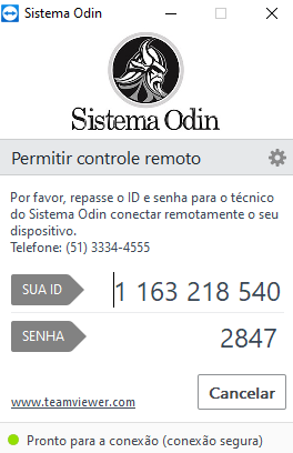 Para acessarmos remotamente o seu computador via Team Viewer acesse o link http://www.odin.com.br/sou-cliente-suporte/ e clique em TeamViewer. Logo, iniciará o download da ferramenta.