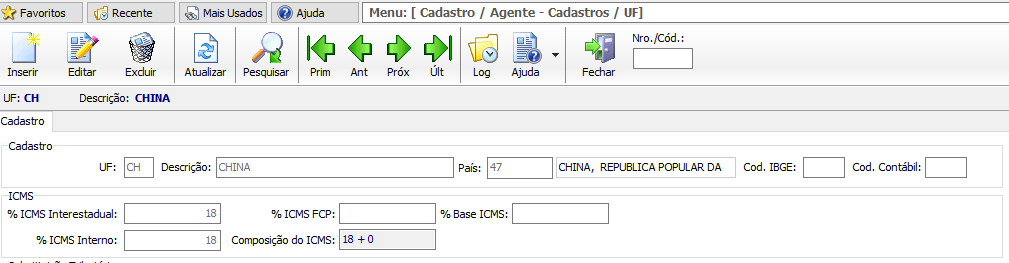 - Acesse o menu Cadastro / Agente - Cadastros / UF