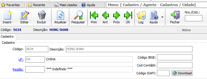 - Acesse o menu Cadastro / Agente - Cadastros / Cidade