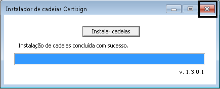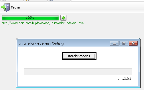 - Após realizar o download das cadeias, o sistema abrirá uma tela para iniciar a instalação.