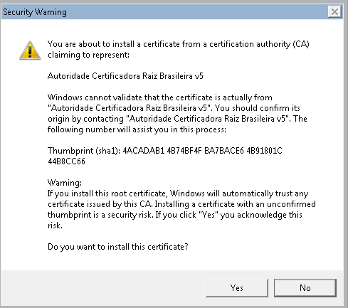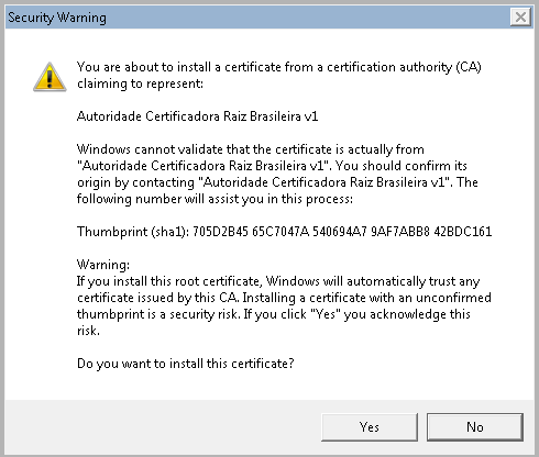Para estabelecer uma conexão segura com quaisquer serviços existentes sob esses endereços será necessário que a cadeia destes novos certificados esteja instalada na máquina do usuário.