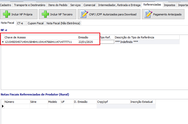 - NF modelo 1 ou 2 (tag: refNF)