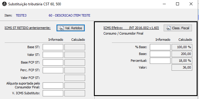 Para o ICMS Efetivo, será utilizada a CST 60 ou CSON 500, porém será necessário diferenciar ICMS-ST Retido através dos dados destinatário da operação.