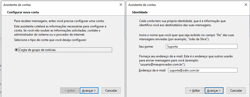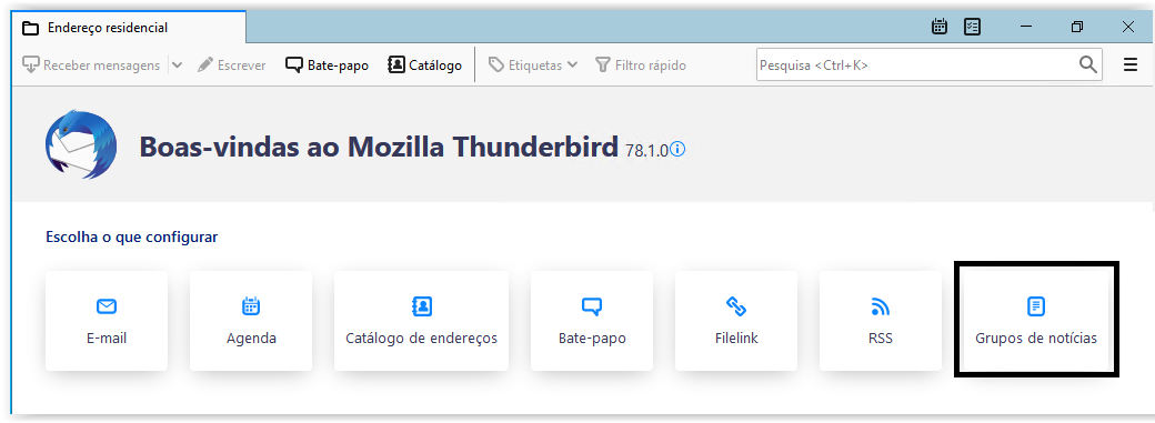 1. Na tela inicial do Thunderbird selecionar "Grupo de notícias"