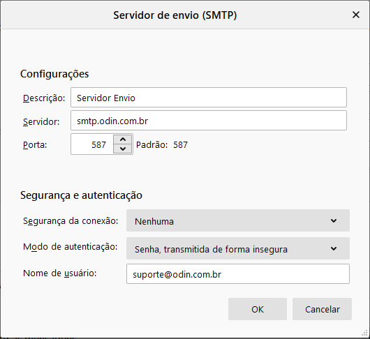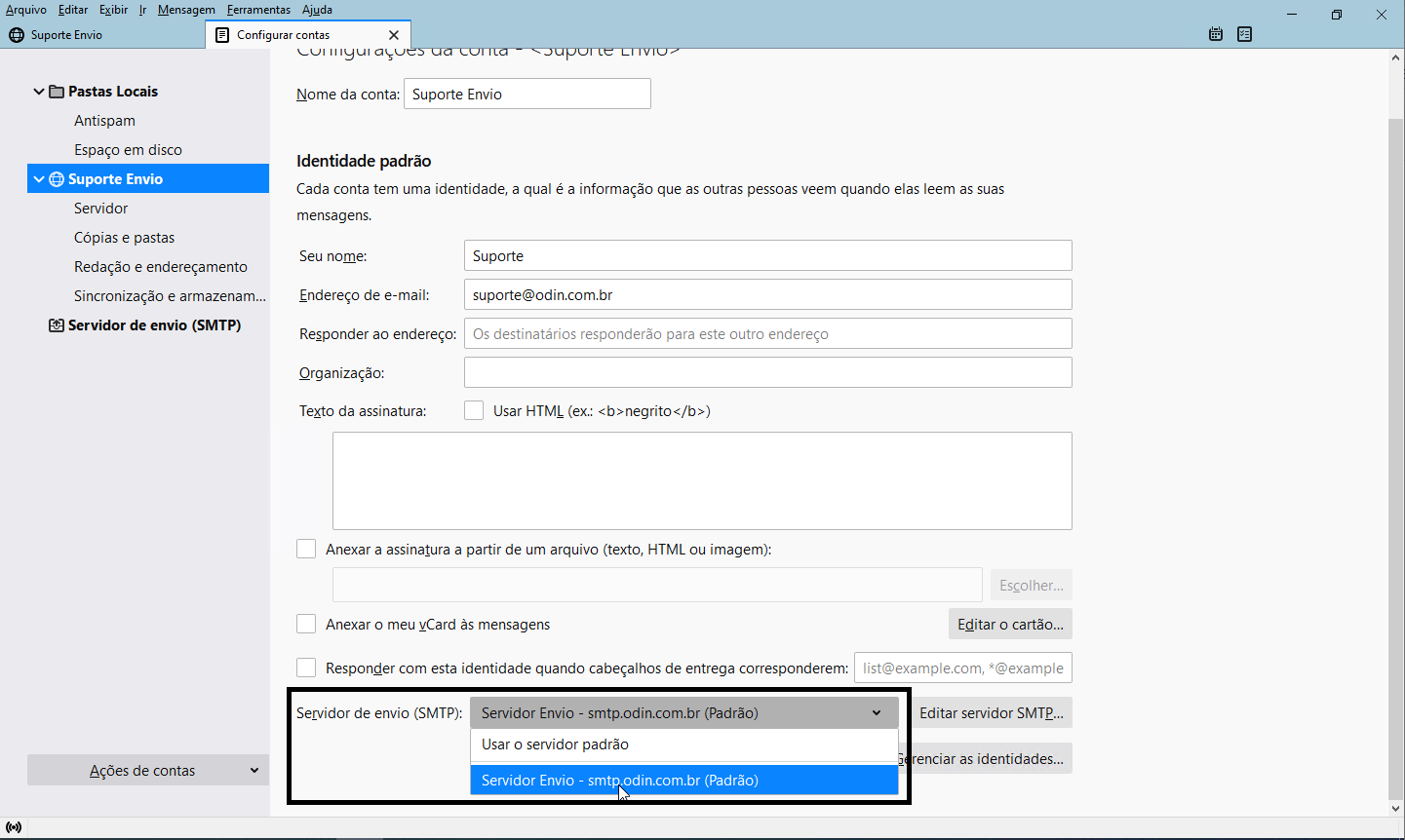Este artigo destina-se para a configuração de uma conta de e-mail no Thunderbird, para somente envio de e-mails. Indicada para ser utilizada quando computador possui uma versão do Outlook incompatível com a rotina de envio do Odin.