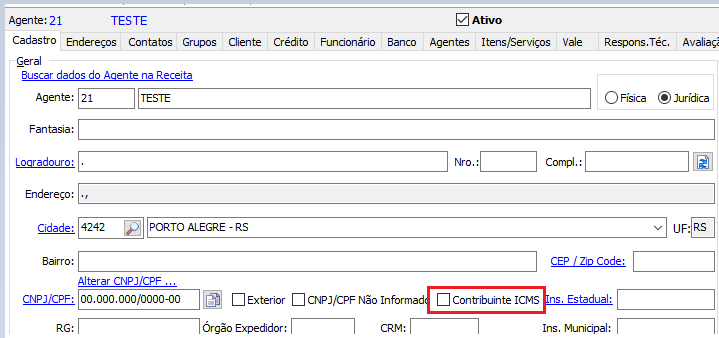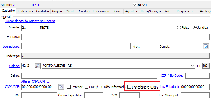 O Não Contribuinte, pode ou não possuir Inscrição Estadual no Cadastro de Contribuintes do ICMS, que no Sistema Odin deve ser configurado conforme a situação.