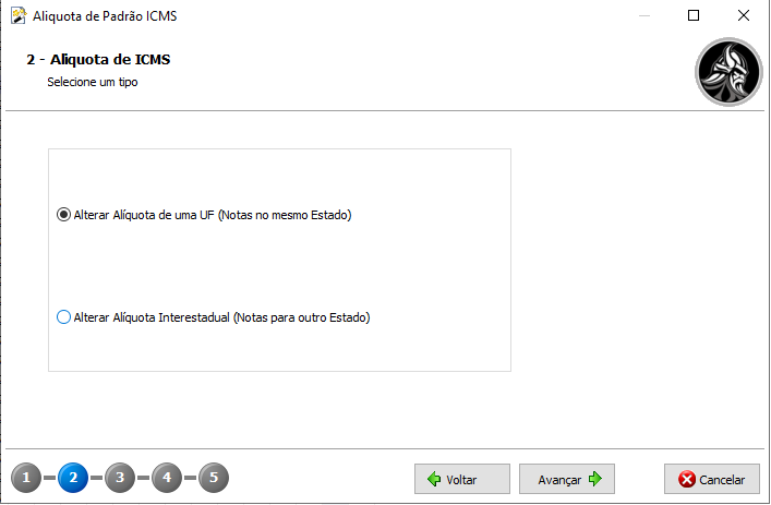 - Marque a opção "Alterar Alíquota de uma UF (Notas no mesmo Estado)";