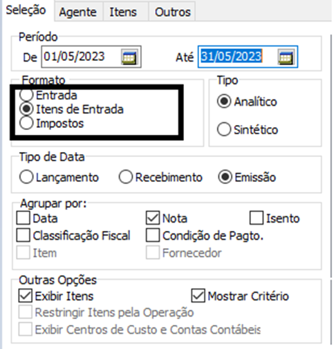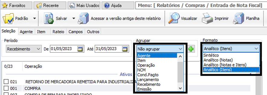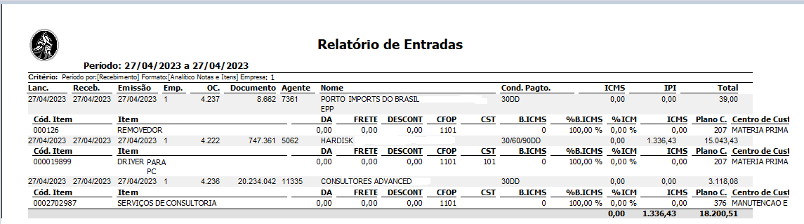 4. Versão Antiga do Relatório de Entrada de Nota Fiscal