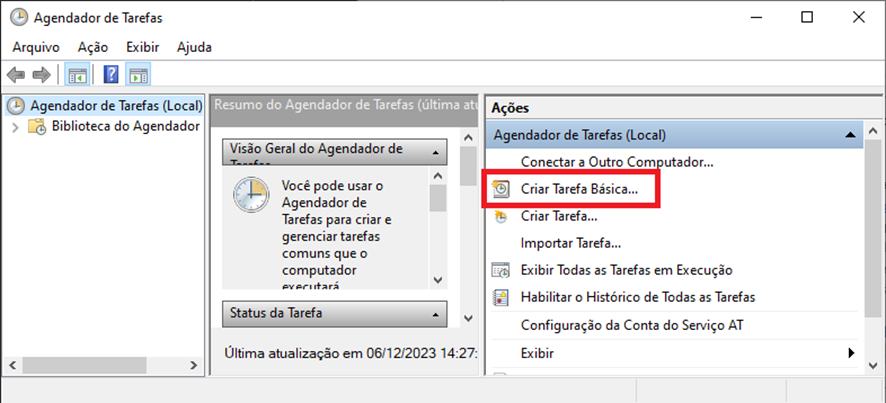 Iniciar o agendador de tarefas para criar uma tarefa básica