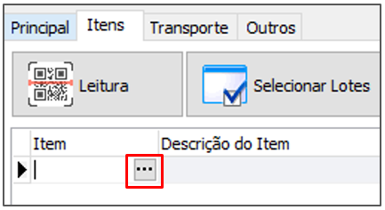 ![]() | · Clique na coluna “Item”, informe o código do item ou vá nos 3 pontos (...) para localizar o item. |