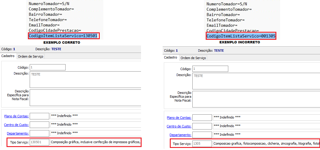 2. Verificar no menu Cadastro / Serviço se o campo Tipo Serviço está com o código de 6 dígitos, conforme imagem acima.