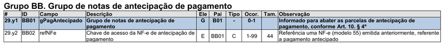 Os campos para o preenchimento do Grupo de Antecipação de Pagamentos do BB foram liberados. Agora é possível referenciar a chave de acesso da NFe emitida anteriormente, permitindo o abatimento das parcelas de antecipação de pagamento, conforme a Lei nº 214/2025.
